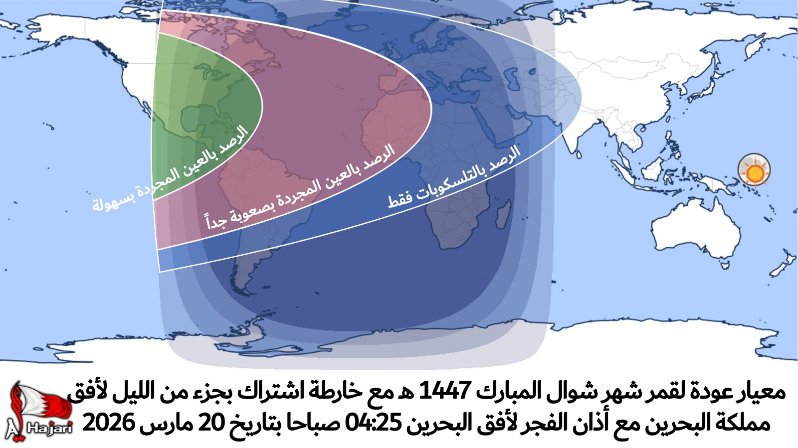 مخطط اشتراك في جزء من الليل مع أفق البحرين لشهر شوال المبارك 1447