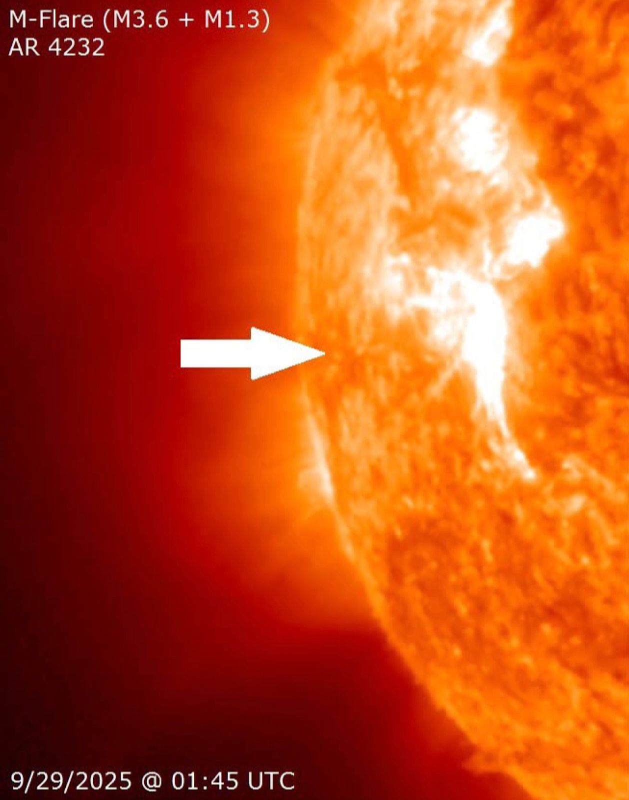 شهدت الشمس خلال الساعات الماضية نشاطاً ملحوظاً تمثل في تسجيل توهجين شمسيين متوسطين متتاليين من الفئة M3.6 و M1.3 صباح اليوم الإثنين 29 سبتمبر 2025 وذلك في محيط البقعة النشطة AR4232 بحسب بيانات القمر الصناعي GOES-19.