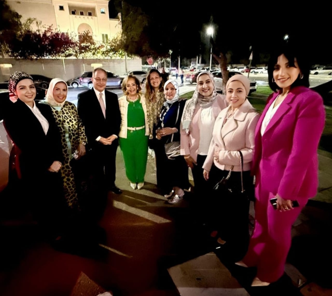 المستشار القنصلي الأستاذة مروى عكاشة….والمستشار العمالي الأستاذة منال عثمان ..والملحق العسكري ممثل القوات المسلحة المصرية عميد وليد عشري والسيدة حرمه و السادة معاونيه