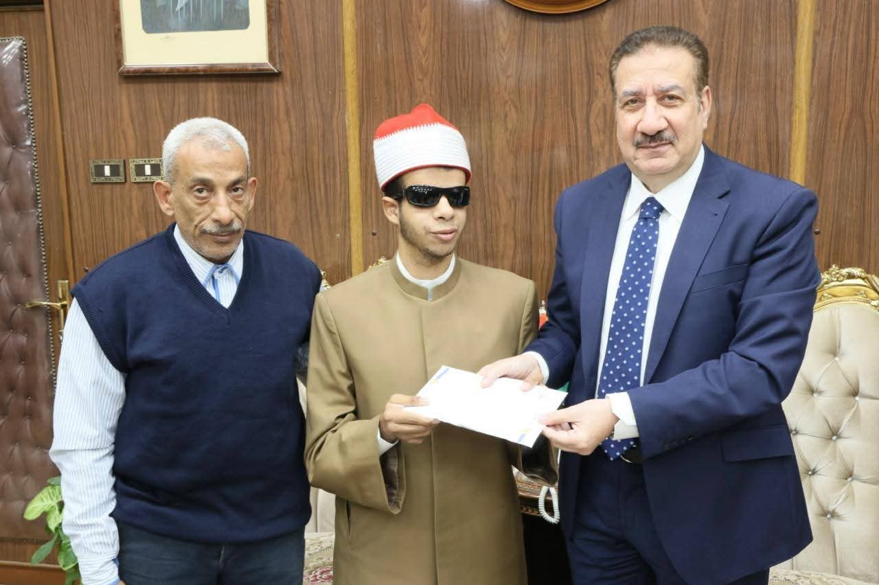محافظ المنوفية يكرم الطالب عبدالرحمن مهدى ابن قرية طبلوها لحصوله على المركز الأول في المسابقة العالمية للقرآن الكريم